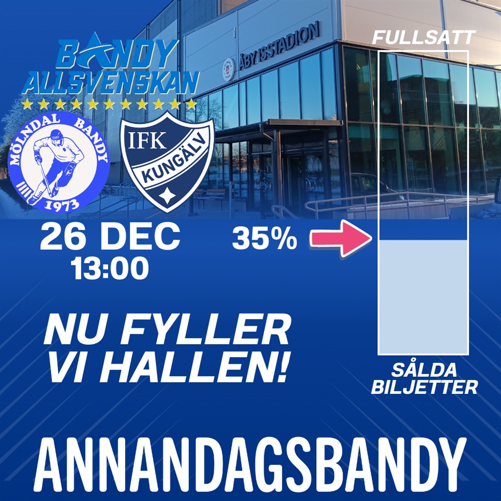 Har du inte köpt dina biljetter till Annandagsbandyn på Åby ännu? Då är det dags att slå till - över 35% av biljetterna har redan sålts!
