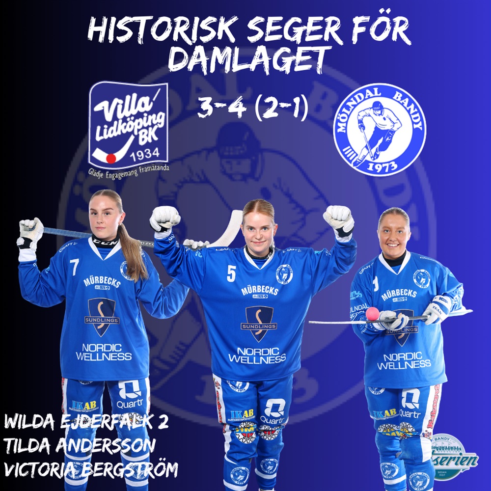 På lördagseftermiddagen besegrade Mölndals damlag Villa/Lidköping på bortaplan med siffrorna 3-4 efter efter 2-1 i paus. Mölndals mål gjordes av, Wilda Ejderfalk två mål, Victoria Bergström och Tilda Andersson....
