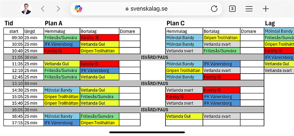 Oktobercupen 19/10. Spelschema och bemanningsschema