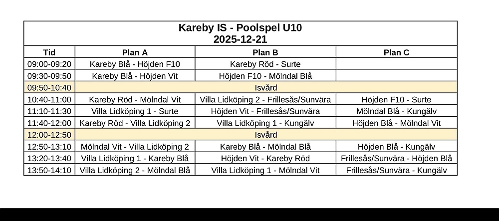 Samling 8:45 för lag blå och 10:00 för lag vit i anvisat omkl-rum.