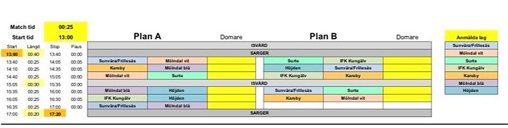 Möjlighet finns att låna in extra avbytare i alla matcher. Men det kan ni komma överens om på plats.